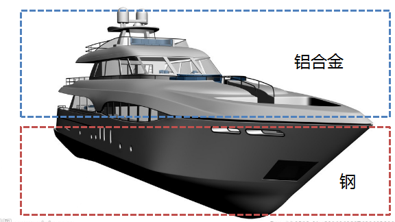 在現(xiàn)代造船業(yè)尤其是高速船舶建造中,為了實(shí)現(xiàn)輕量化,提高船舶航速,往往會(huì)采用密度較低的鋁合金結(jié)構(gòu)。而出于強(qiáng)度、運(yùn)載能力、成本及耐久性等方面考慮,通常主船體是鋼制結(jié)構(gòu),鋁合金僅用于上層建筑以減輕重量及降低重 心,以此提高船體的性能。因此船體上下層之間鋁與鋼的高強(qiáng)度連接關(guān)系到整艘船的巡航性能及使用壽命。